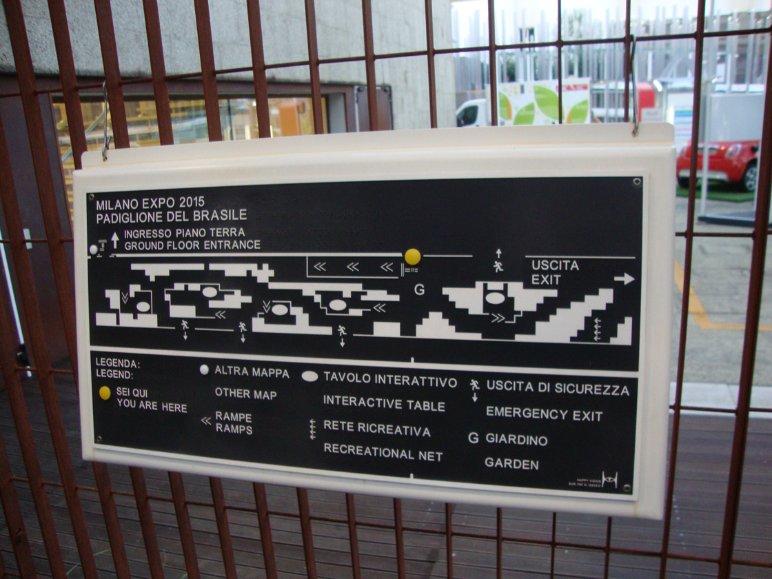 Brazil's pavilion at the Milan Expo 2015 used tactile maps created by Happy Vision: they were made of aluminum without additional applications. The Happy Vision maps were perfectly maintained and were not at all affected by the torrid heat of that Italian summer!